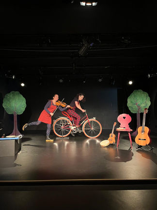 Avec un vélo musical, deux arbres sur scène et deux compères complices, on vous propose un petit festin musical et poétique.